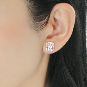 スクエアモチーフのセンターに、シャープな輝きのバケットカットダイヤをセット。