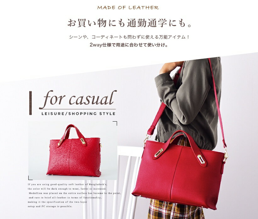 サイズ 高さ:約24.5cm / 幅:約37cm / マチ:約11cm ハンドル長さ 約32cm×幅:約2.8cm、持ち手高さ:約12cm ショルダーベルト長さ 約67〜118cm×幅:約2.5cm(取り外し可能/調節可) 外ポケット 背面ファスナー付きポケット1 内ポケット オープンポケット3、ファスナー付きポケット3 素材 本牛革 重さ 約830g 仕様 2way メイン開閉口はファスナーになっております。