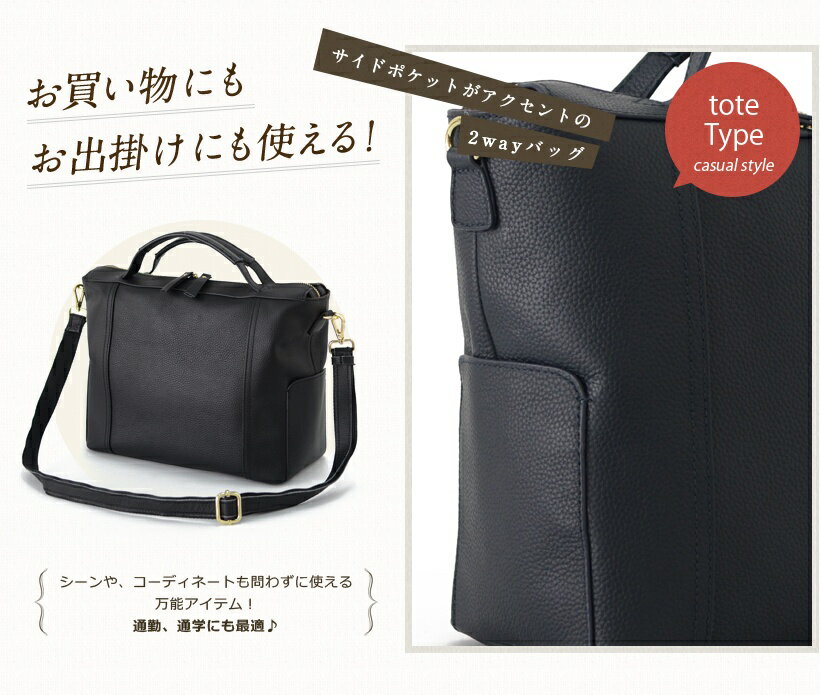 サイズ 高さ:約24.5cm / 幅:約30.5cm / マチ:約12cm ハンドル長さ 長さ:約25cm / 幅:約2.2cm/持ち手高さ:約6.5cm ショルダーベルト長さ 長さ:約63.5〜119.5cm×幅:約2.6cm(取り外し可能/調節可) 外ポケット 背面ファスナー付きポケット1、サイドポケット2 内ポケット オープンポケット3、ファスナー付きポケット2 素材 本牛革/内生地:ポリエステル 重さ 約550g 仕様 2way バッグのメイン開閉口はファスナーになっております。