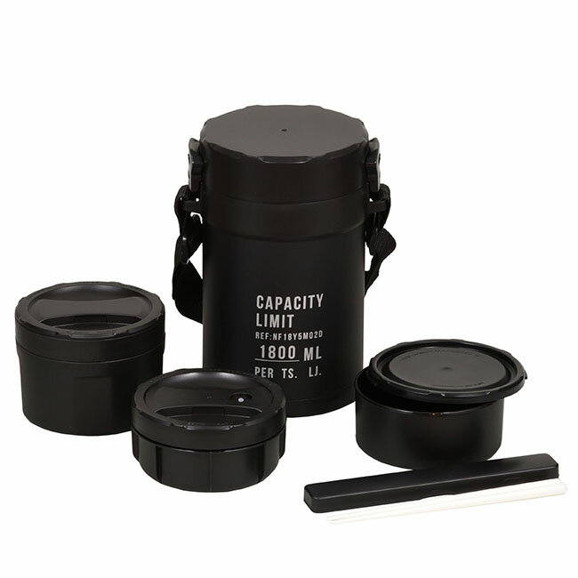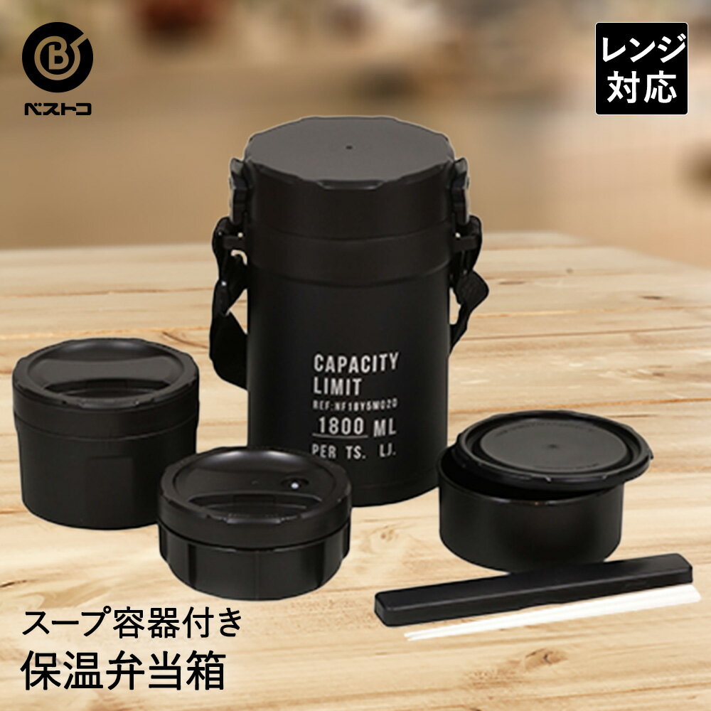 【ベストコ】ステンレス ランチジャー 弁当箱 1.8L ティフィン ブラック | 保温弁当箱 スープ容器付き 3段 男性 学生 お弁当 1800ml 縦型 電子レンジ お弁当箱 保温 ランチボックス メンズ 大容量 おしゃれ 男子 スープ シンプル 大人 ジャー 真空断熱